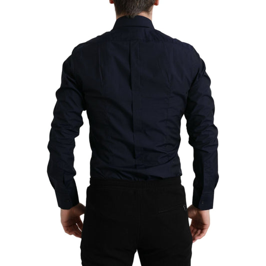 قميص دولتشي آند غابانا الأنيق من قماش الجاكار باللون الأزرق الداكن