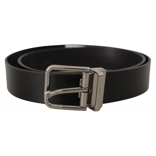حزام دولتشي آند غابانا المصنوع من جلد العجل الأسود ومشبك معدني بشعار قديم