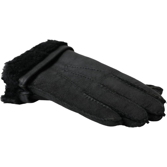 قفازات قصيرة من الجلد الأسود من دولتشي آند غابانا