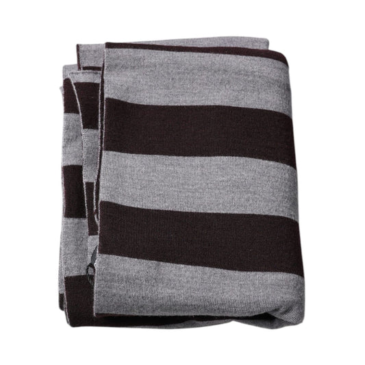Dolce & Gabbana Black Gray Stripes Wool Neck Wrap Scarf