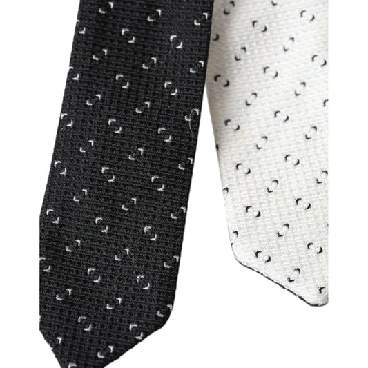 ربطة عنق رجالية قابلة للتعديل من دولتشي آند غابانا من الحرير الأسود المنقط بالأبيض والأسود