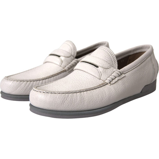 حذاء موكاسين جلدي أبيض رمادي من دولتشي آند غابانا