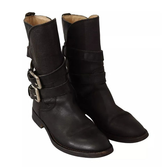 حذاء دولتشي آند غابانا أسود من الجلد بمشبك حتى منتصف الساق