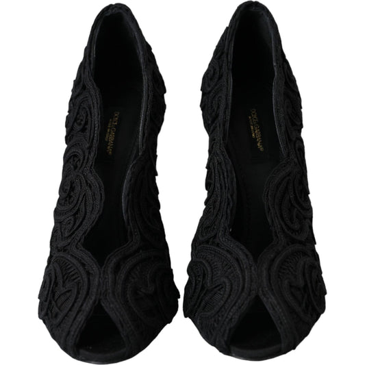 دولتشي آند غابانا حذاء كوردونيتو ريكامو أسود بمقدمة مفتوحة