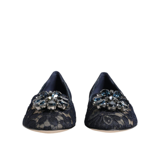 Dolce & Gabbana Blue Crystal Loafer Lace Ballet Flats Shoes