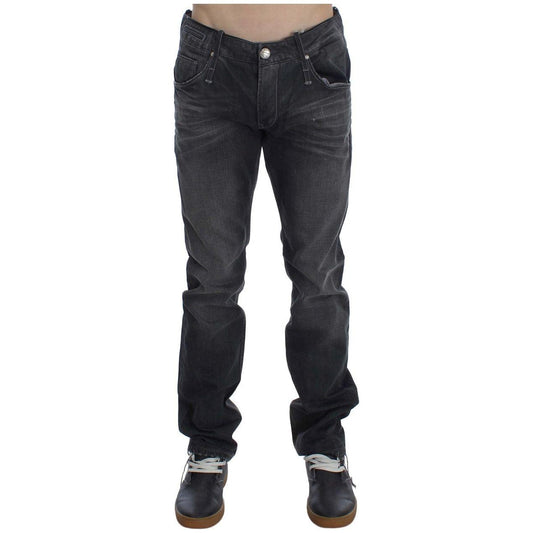 Acht Dark Gray Cotton Slim Fit Denim Low Waist Denim Jeans