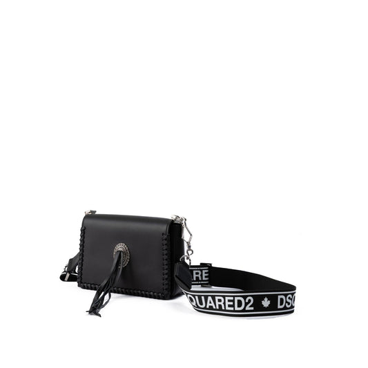 سترة Dsquared² جلدية سوداء بأكمام طويلة وياقة