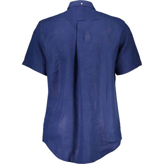 قميص غانت الأنيق المصنوع من الكتان باللون الأزرق بأزرار