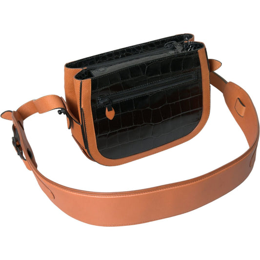Balenciaga Black Brown Exotic Skin Leather Vertical Crossbody Purse Bag