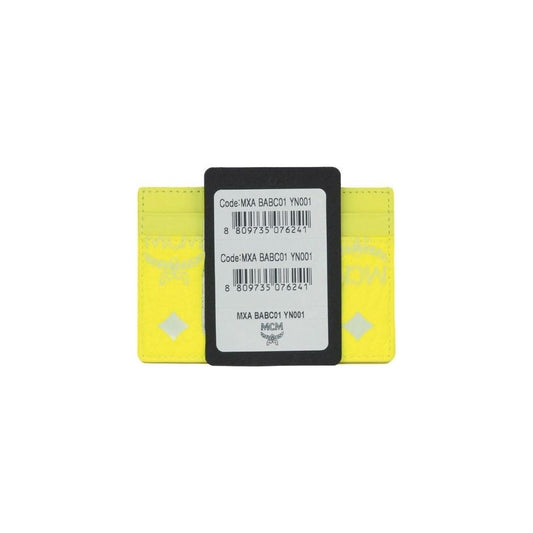 محفظة بطاقات جلدية من MCM Spectrum Diamond Mini Neon Yellow Visetos