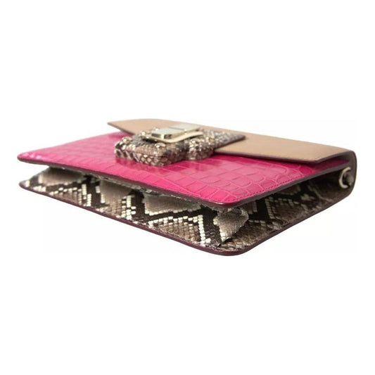 حقيبة LUCIA من دولتشي آند غابانا مصنوعة من جلود غريبة باللون الوردي والأحمر وسلسلة ذهبية