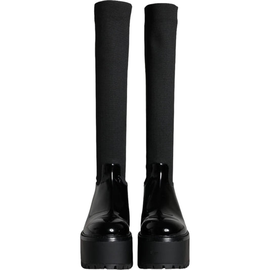 حذاء Dolce & Gabbana أسود من قماش الجيرسي المطاطي بطول الكاحل