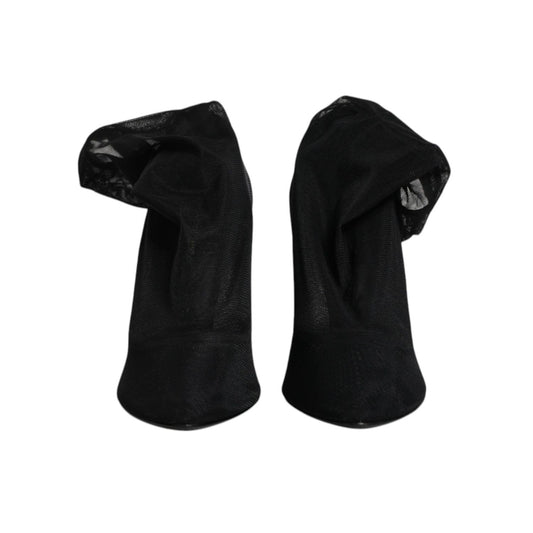 Dolce & Gabbana Black Silk Mesh Sock Style Boots Shoes
