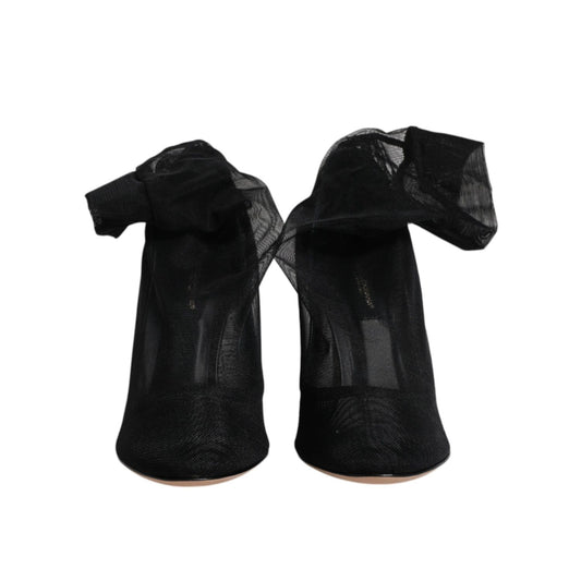 Dolce & Gabbana Black Tulle Ankle Boots Stiletto Heels Shoes