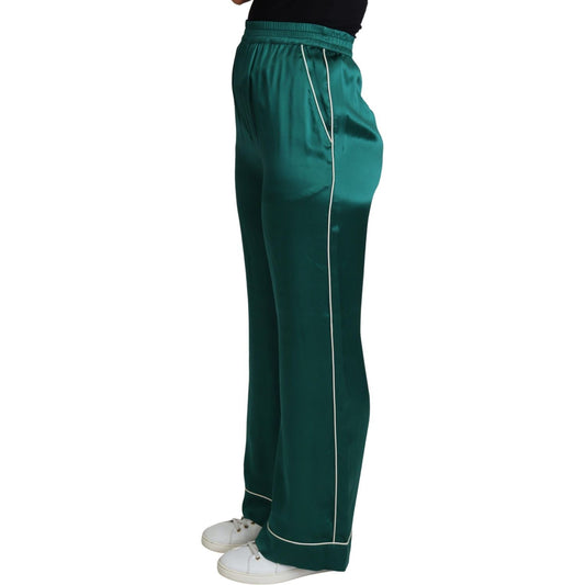 بنطلون بيجاما حريري فاخر باللون الأخضر الغامق من دولتشي آند غابانا