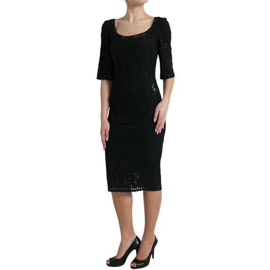 Dolce & Gabbana Black Floral Lace Viscose Bodycon Midi Dress