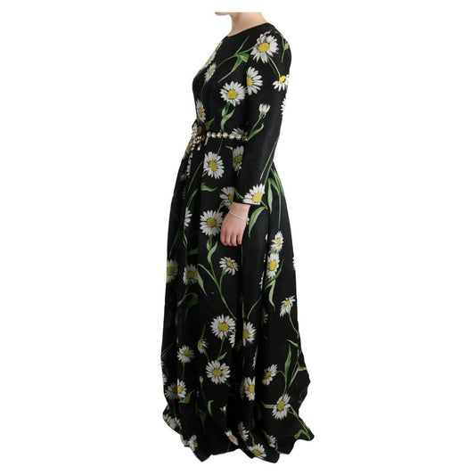 فستان ماكسي من دولتشي آند غابانا بطبعة زهور عباد الشمس والكريستالات