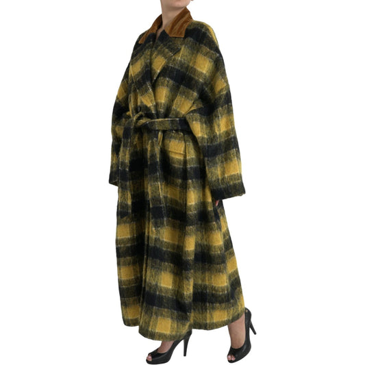 معطف طويل منقوش أنيق من دولتشي آند غابانا باللون الأصفر المشمس