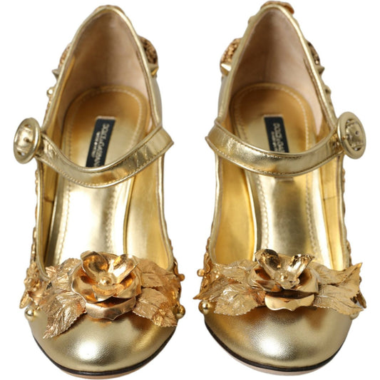 حذاء ماري جين الذهبي الجلدي من دولتشي آند غابانا