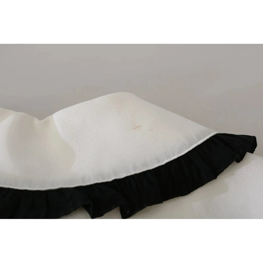 قميص حرير أبيض من دولتشي آند غابانا مع بلوزة بياقة دائرية وكشكشة