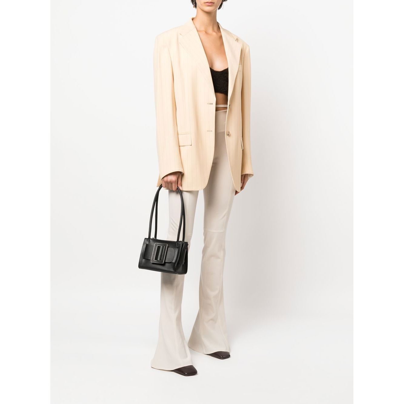 حقيبة يد بوبي بإبزيم من BOYY مصنوعة من جلد العجل باللون الأسود، وتفاصيل إبزيم مزخرفة، وخصر بحزام، ومقبضان علويان طويلان وسحاب علوي للإغلاق. المقاس والمقاس - العرض 7,09 بوصة / 18 سم الارتفاع 5,12 بوصة / 13 سم العمق 4,72 بوصة / 12 سم المقبض 9,84 بوصة / 25 سم