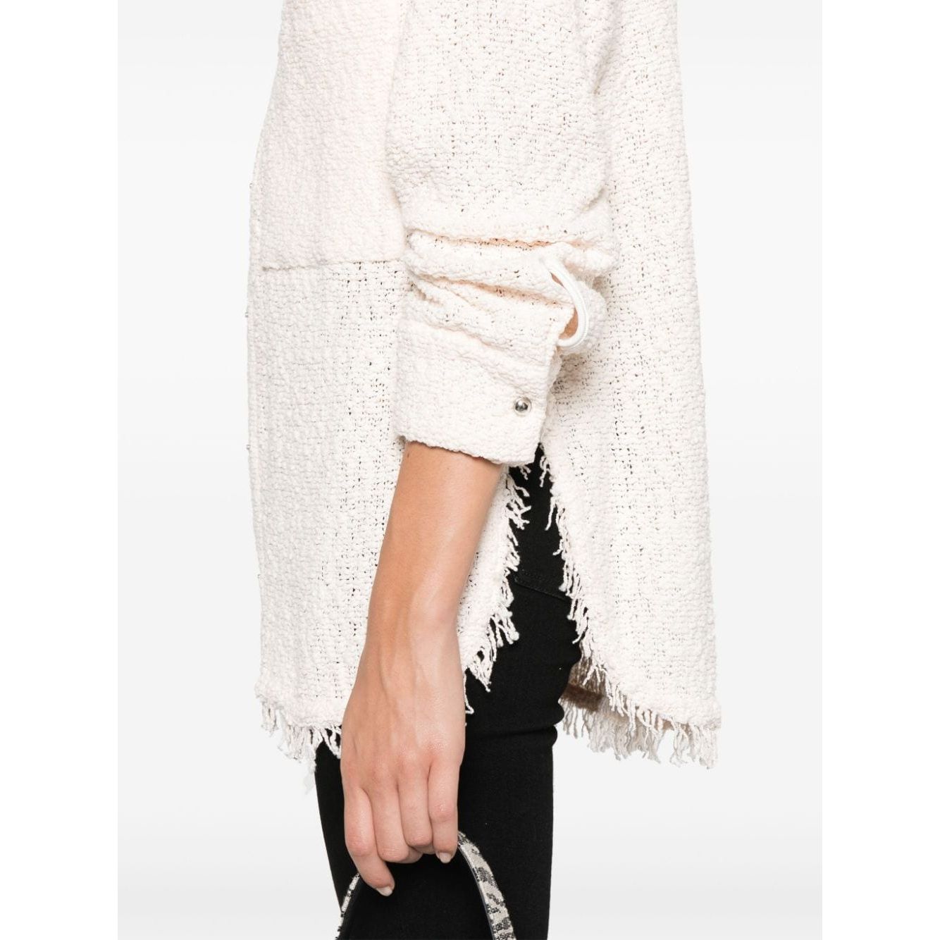تصميم بوكليه من التويد باللون الوردي الفاتح، إغلاق بزر كبس أمامي، ياقة كلاسيكية، وسائد كتف، أكمام طويلة، إغلاق بزر كبس، أكمام، جيبان على الصدر، فتحات جانبية، بطانة جزئية، حاشية منحنية متهالكة، المقاس والملاءمة - هذه القطعة تناسب المقاس الحقيقي. نوصيك بالحصول على مقاسك المعتاد. يبلغ طول العارضة 1.75 متر / 5 أقدام و8 بوصات، وترتدي مقاس 36 (فرنسا)