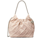 pale pink gathered top chain-link shoulder strap patterned quilted design detachable charm Fleming mini leather hobo bag