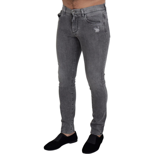 Dolce & Gabbana Grey Cotton Denim Slim Fit Distressed Pants Jeans