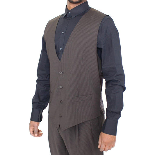 Dolce & Gabbana Gray Striped Wool Single Breasted Vest