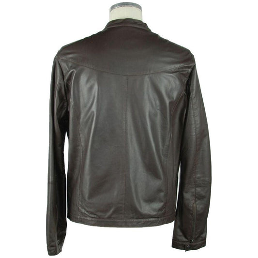 Costume National Brown Leather Silver Tone Metal Keyring Keychain