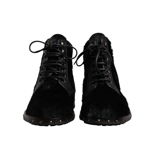 Dolce & Gabbana Black Pony Style Leather Mid Calf Boots Shoes