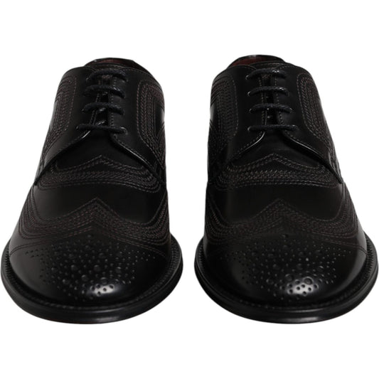 Dolce & Gabbana Black Embroidered Classic Leather Derby Dress Shoes