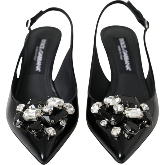 Dolce & Gabbana Black Patent Leather Crystal Slingback Shoes
