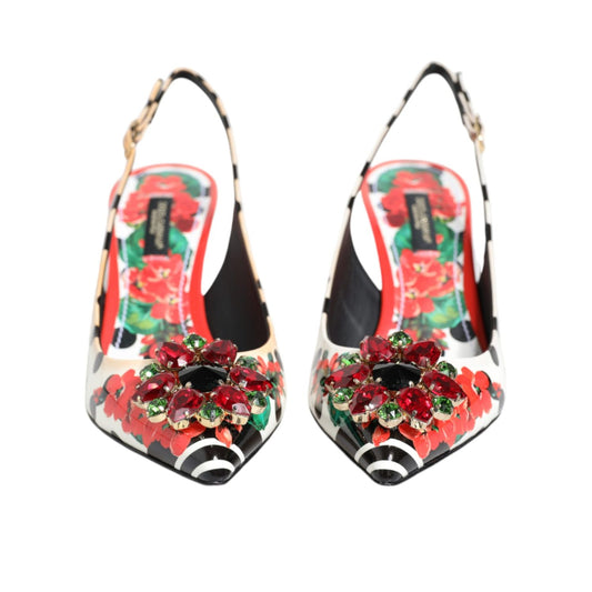 Dolce & Gabbana Multicolor Leather Crystal Heels Slingback Shoes