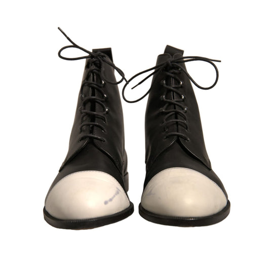 Sergio Rossi Black White Leather Lace Up Flats Ankle Boots Shoes