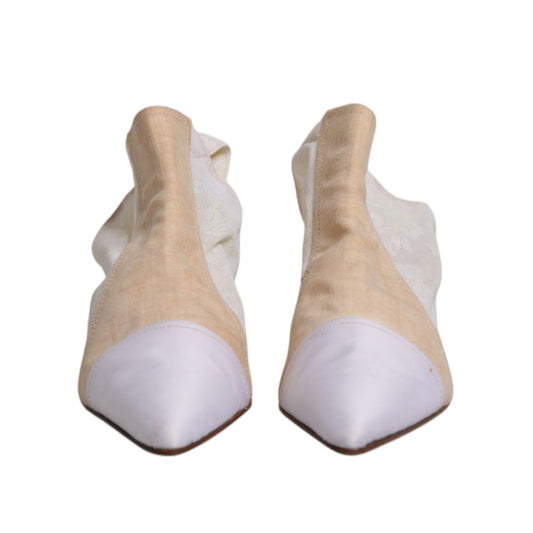 Dolce & Gabbana Beige Satin Crystal High Heels Pumps Shoes