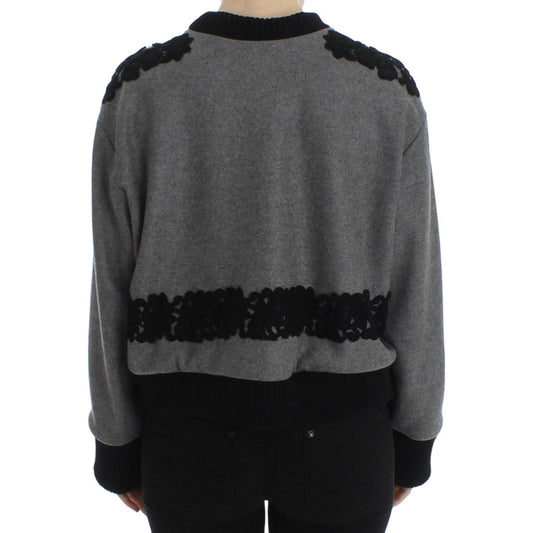 Dolce & Gabbana Gray Black Lace Wool Cashmere Sweater