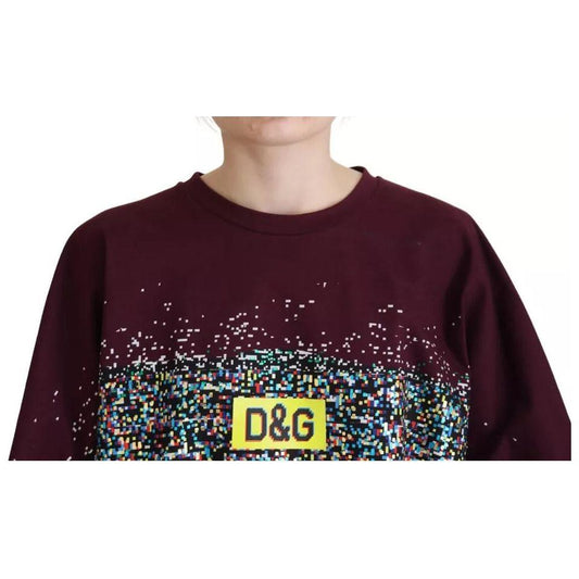 Dolce & Gabbana Bordeaux D&G Print Round Neck Cotton T-shirt