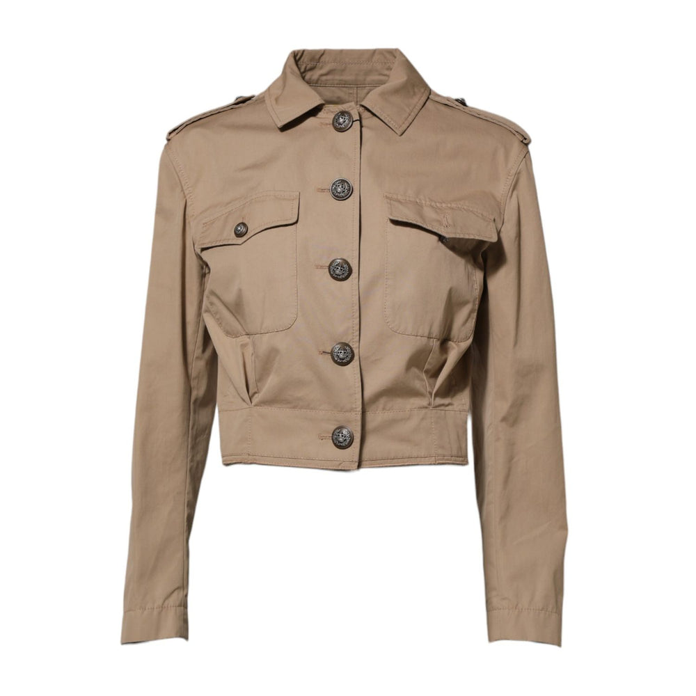Dolce & Gabbana Beige Cotton Button Up Fitted Cropped Jacket