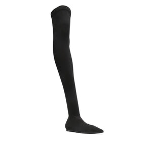 black stretch-jersey pointed toe thigh-length branded leather insole flat leather sole pull-on style Stretch jersey over-the-knee boots Size and Fit - Heel 0,4 in / 1 cm