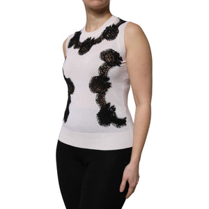 Gorgeous brand new, 100% Authentic Dolce & Gabbana pullover tank top crafted from cashmere features a crew neck and sleeveless with floral lace detailing.