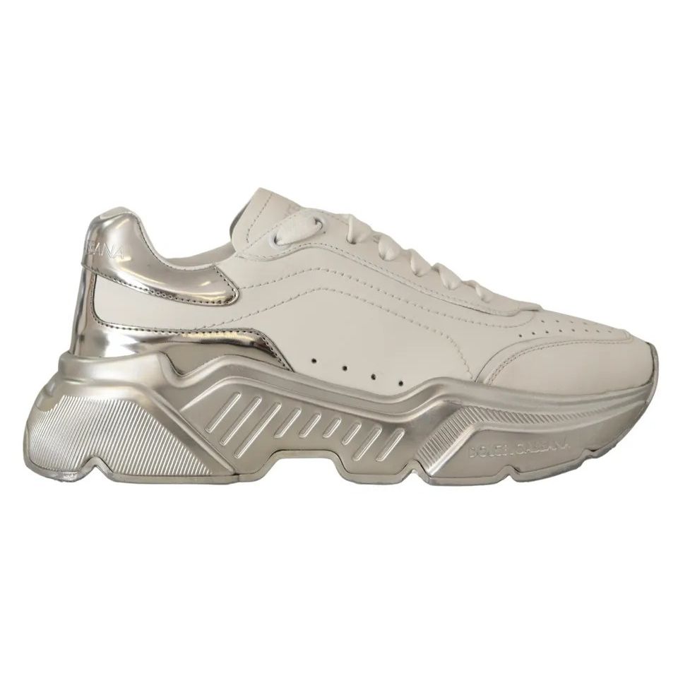Dolce & Gabbana White Silver Leather Daymaster Sneakers Shoes