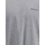 Light grey melange cotton T-shirt with Gucci embroidery on the chest and contrasting Web details.