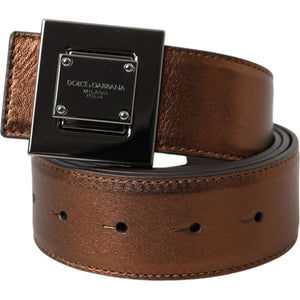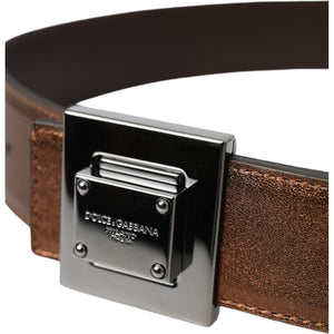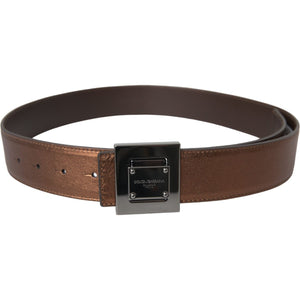 Dolce & Gabbana Metallic Bronze Leather Square Metal Buckle Belt