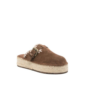 chocolate brown platform sole whipstitch detailing round toe Leather slippers Size and Fit - HEEL: 4.0 Centimetres.