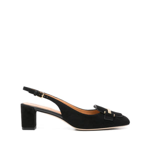 black buckle-fastening slingback strap low block heel branded leather insole leather outsole Leather slingback pumps Size and Fit - Heel 2,2 in / 5,5 cm