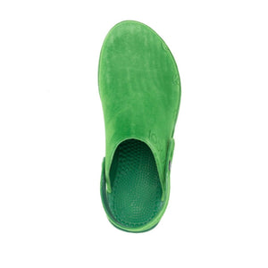 Pantofole con dettaglio logo in rilievo di XOCOI con tacco basso e largo, verde brillante, logo inciso, cinturino posteriore, punta tonda e soletta con marchio. Slingback platform mules Size and Fit - Heel 2,4 in / 6 cm; Platform 1,4 in / 3,5 cm